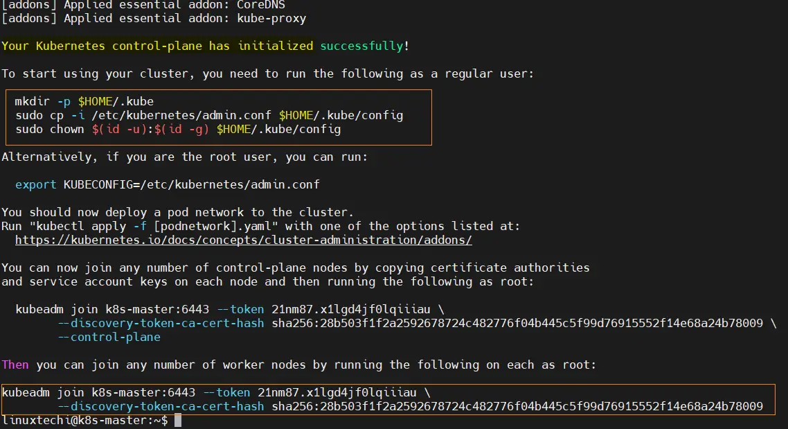 $ sudo kubeadm join k8s-master:6443 --token 21nm87.x1lgd4jf0lqiiiau \