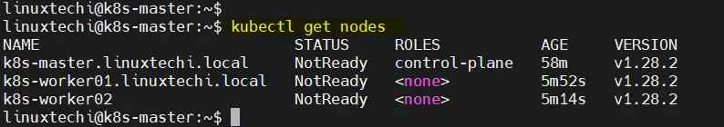 $ sudo hostnamectl set-hostname "k8s-worker01.linuxhint.ru" // Run on 1st worker node